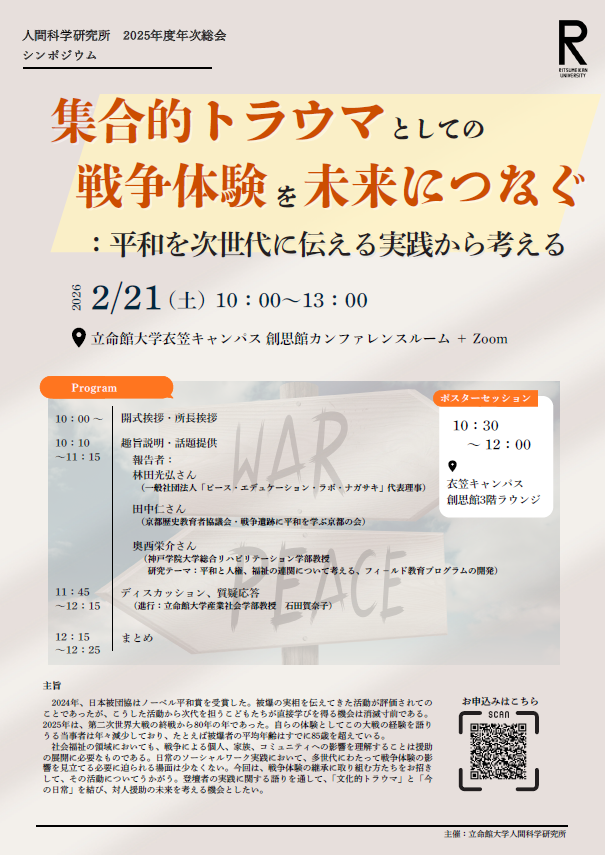 <2025年度立命館大学人間科学研究所年次総会>シンポジウム「集合的トラウマとしての戦争体験を未来につなぐ:平和を次世代に伝える実践から考える」
